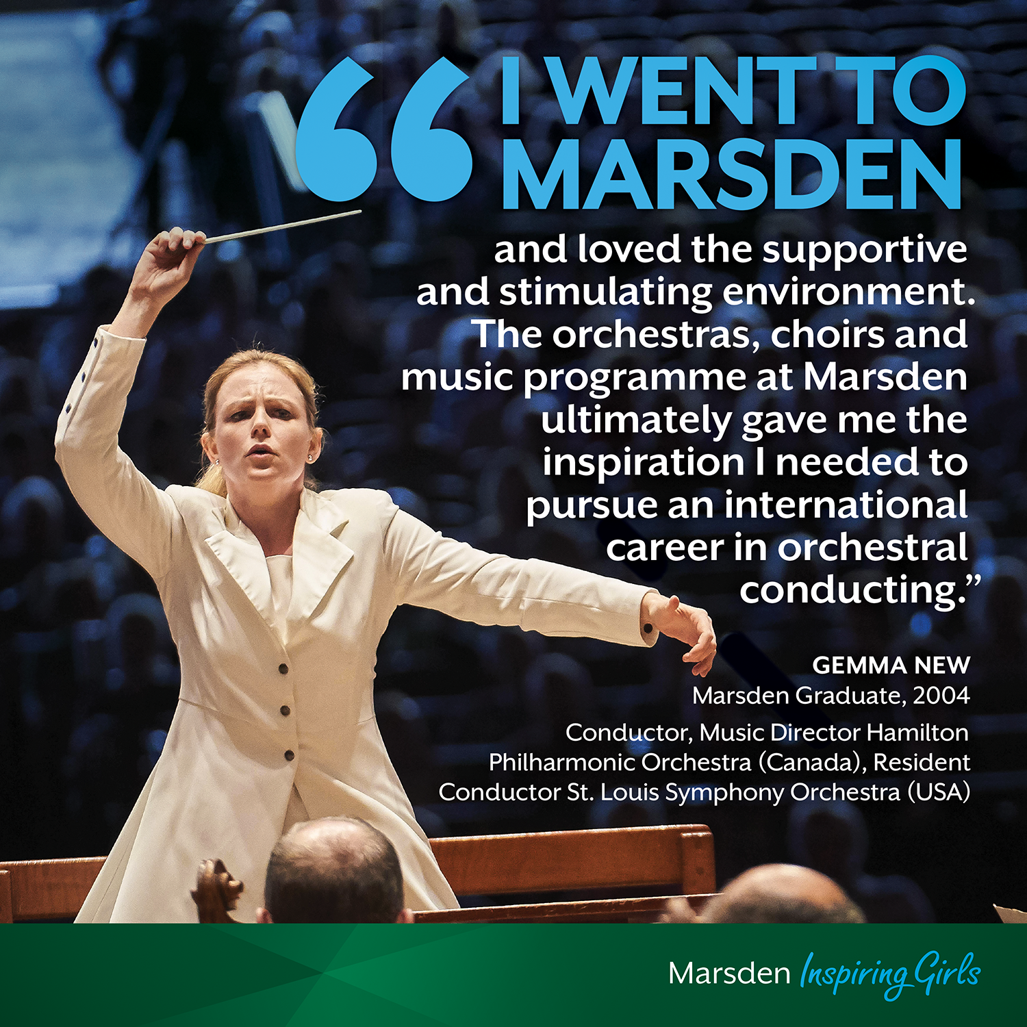 Gemma returns periodically to New Zealand as a guest conductor with the NZSO and also makes time to visit and inspire a new generation of Marsden music students.