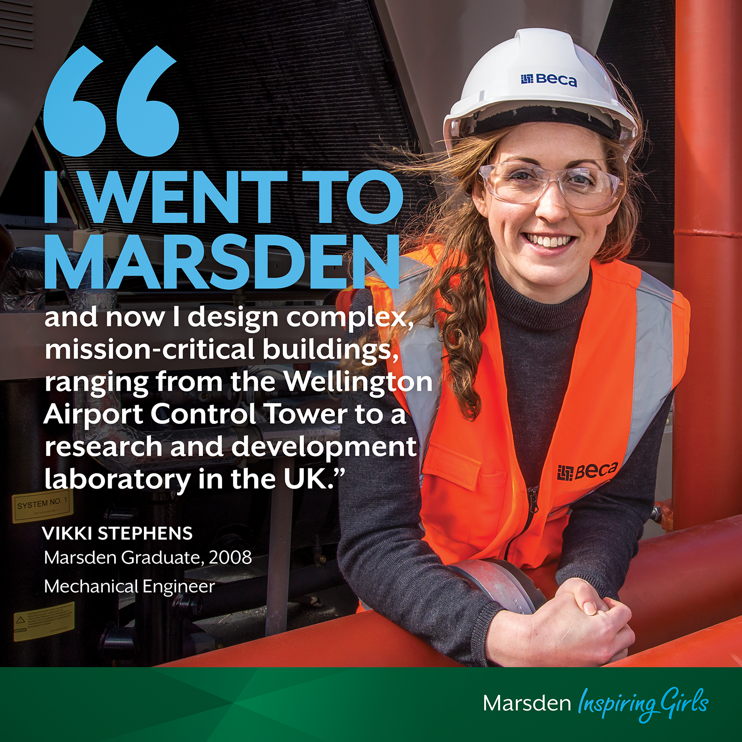 Vikki Stephens graduated from Marsden in 2008 and went on to study Mechanical Engineering at the University of Canterbury, graduating with Honours in 2013. In her final year she was part of a research and design team working on a project for Trinder Engineers to assess the driver’s cab of their industrial vehicles for crash safety.